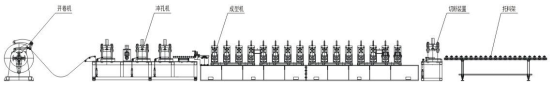 電氣罩殼自動生產線該生產線由上料小車、開卷機、入料導正、沖孔、切斷、輥壓成型機、成型剪、自動碼垛、液壓系統、電氣控制系統組成。該生產線在線不停機沖孔、不停機切斷